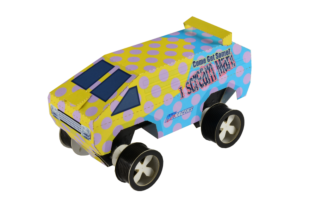 All vehicle bodies are constructed of precut paper & glue, the plastic chassis and wheels,